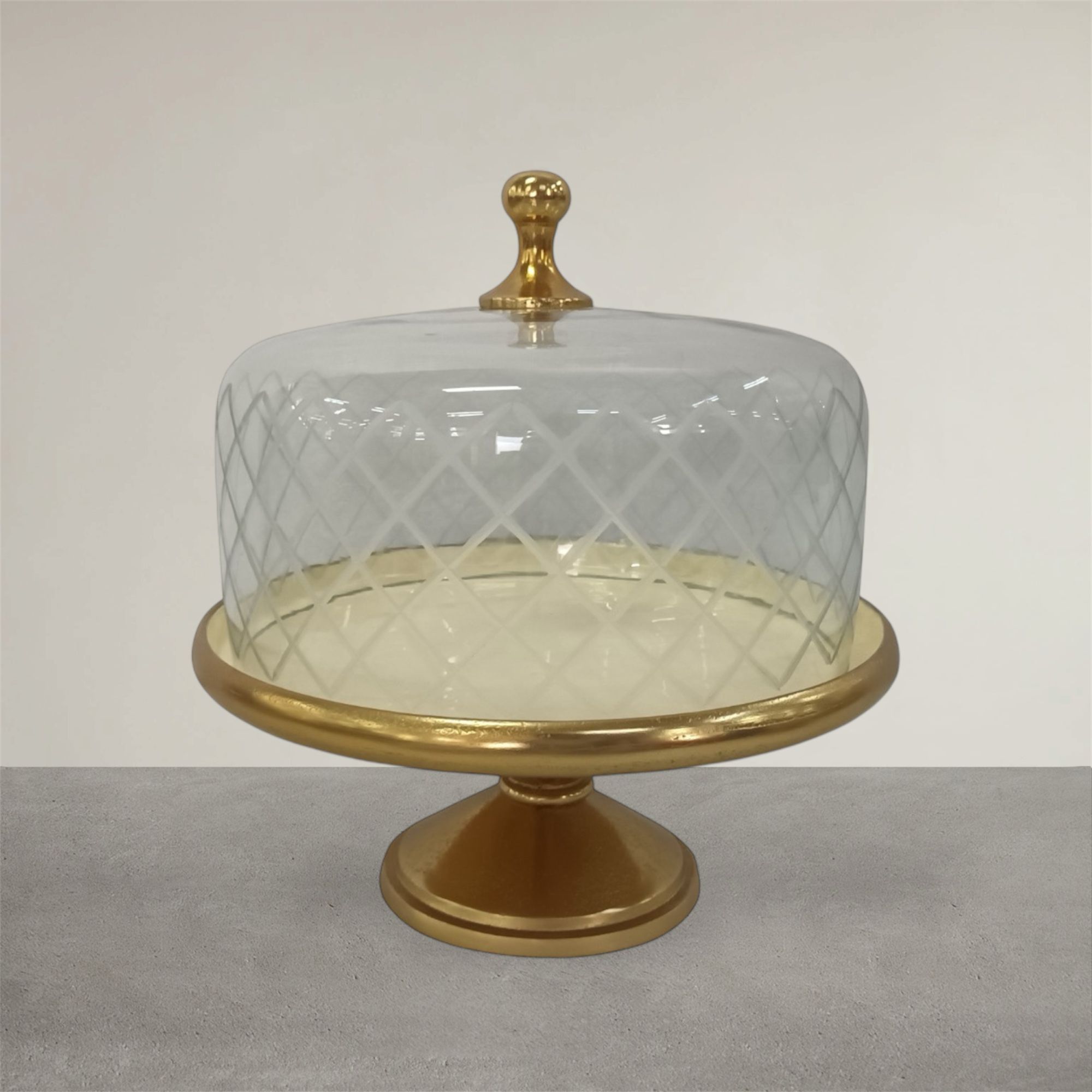 הפכו כל שולחן אירוח למרהיב עם מעמד העוגה היוקרתי שלנו! בעיצוב אלגנטי ומרשים, המשלב מתכת בגימור זהב נוצץ עם כיסוי זכוכית שקוף בעל דוגמה גיאומטרית קלאסית, המעמד הזה הוא הרבה יותר מסתם כלי הגשה – הוא פריט דקורטיבי שמשדרג כל שולחן.