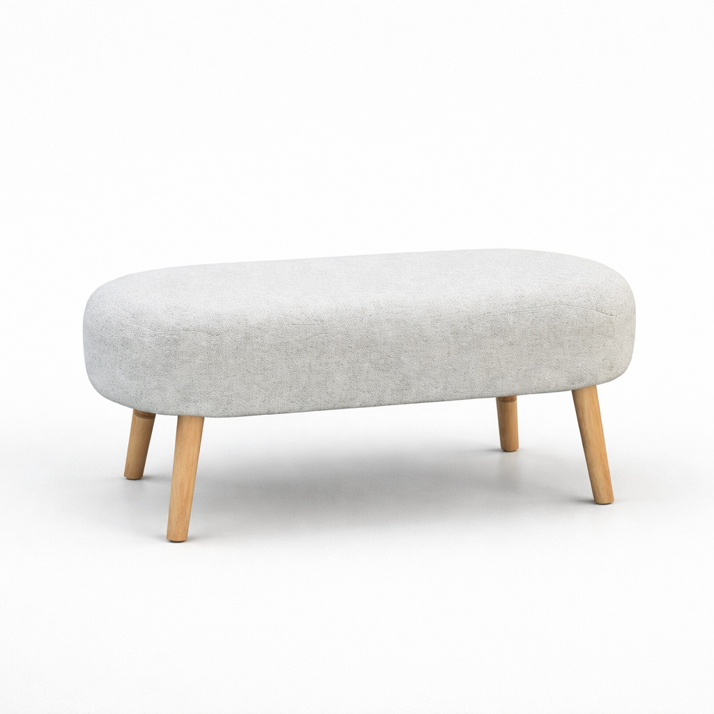 הדום אפור מרופד עם רגלי עץ טבעי בעיצוב סקנדינבי נקי ומדויק.