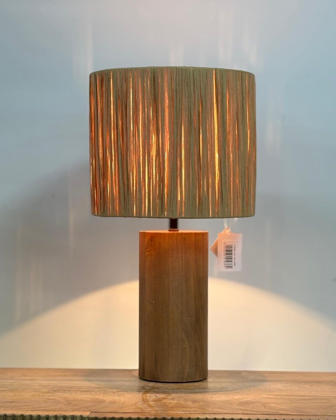 מנורת שולחן עם אהיל בד קנבס במרקם אנכי אלגנטי ובסיס עץ טבעי בגימור חמים, היוצרת תאורה רכה ועוטפת המוסיפה עומק וסטייל רגוע לכל חלל – סלון, חדר שינה או פינת קריאה מעוצבת.
