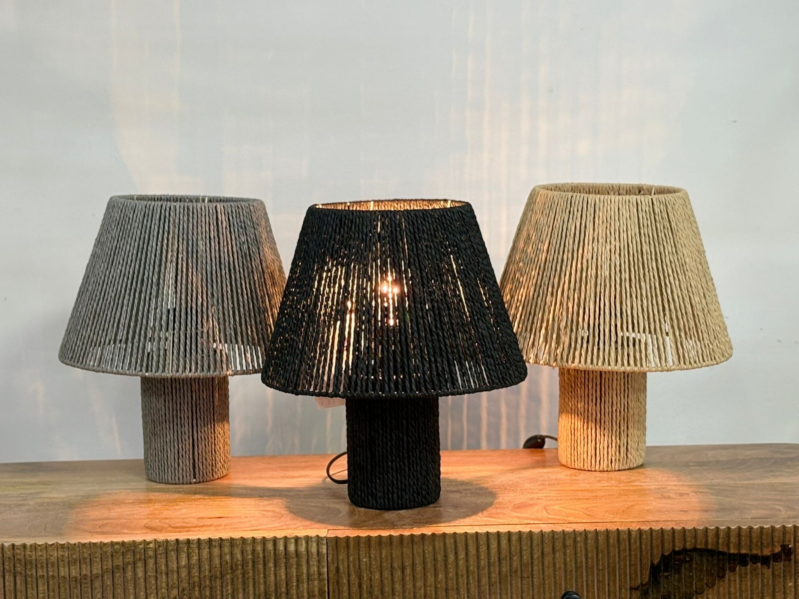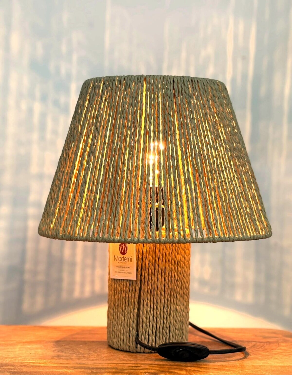 מנורת שולחן מחבל טבעי בעבודת קליעה עדינה, המפזרת אור חמים רך היוצר אווירת רוגע יוקרתית ותחושת בית טבעית. שילוב מושלם של חומרי גלם טבעיים ועיצוב בוהו־שיק אלגנטי, אידיאלי לשידה, מזנון או פינת ישיבה מעוצבת.
