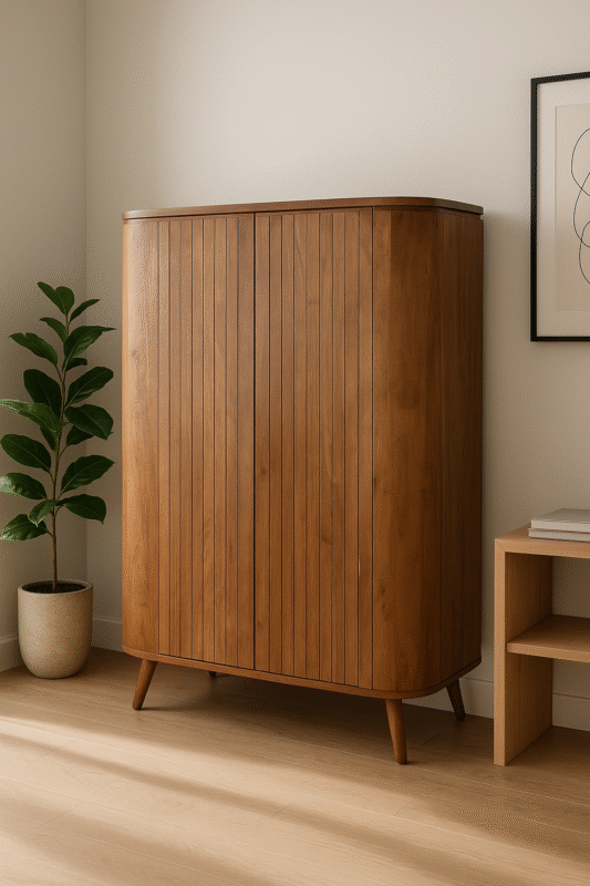 שידה מעץ מלא מעוצב מעץ מנגו מלא בגוון חמים וטבעי. חזית אנכית נקייה עם פינות מעוגלות ורגליים אלגנטיות, שמשלבים מראה עכשווי עם תחושת חמימות. אידיאלי לאחסון בחלל מרכזי – סלון, פינת אוכל או חדר שינה.